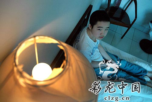 坐在床上白血病患者李萬宇 實(shí)習(xí)記者 曾永洪/作
