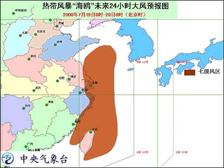 中新網(wǎng)7月19日電 中央氣象臺7月19日06時發(fā)布臺風(fēng)消息:今年第7號強熱帶風(fēng)暴“海鷗”于昨天晚上在福建省霞浦縣境內(nèi)減弱為熱帶風(fēng)暴,今天早晨5時其中心位于浙江省泰順縣境內(nèi),就是北緯27.6度、東經(jīng)119.8度,最大風(fēng)力有8級(20米/秒)。預(yù)計,風(fēng)暴中心將以每小時15-20公里的速度向北偏東方向移動,強度繼續(xù)減弱。
