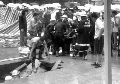 昨天上午,鄭州火車站附近的敦睦路發(fā)生路面塌陷事故,兩名行人墜入近4米深坑,被下陷土方掩埋。經(jīng)消防戰(zhàn)士搶救,兩人被挖出,暫無生命危險。采訪中,記者遭到阻撓。目前,事故原因仍不得而知。