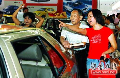 2008湖南車展沒有讓老人失望。上午10點(diǎn)30分,“雜交水稻之父”袁隆平院士,帶著一家子,經(jīng)過1個多小時的挑選后,終于笑言:“心里有底了”。