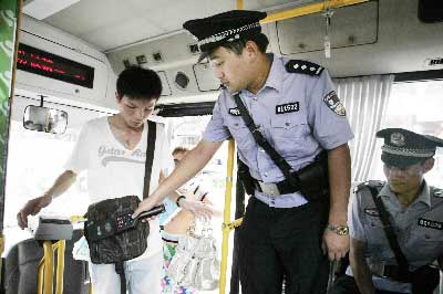 廣泛發(fā)動(dòng)群眾積極舉報(bào)涉恐涉黑涉惡犯罪線索,嚴(yán)厲打擊涉恐涉黑涉惡犯罪是長(zhǎng)沙公安機(jī)關(guān)根據(jù)面臨的新形勢(shì)、新任務(wù)、新要求實(shí)施的一項(xiàng)重大舉措,大量事實(shí)證明,犯罪分子藏匿在群眾之中。從昨日起,長(zhǎng)沙公安城管警察攜帶包括多功能腰帶、對(duì)講機(jī)、催淚噴射器、手銬、執(zhí)勤包、伸縮性警棍六件套裝備和危爆物品檢測(cè)儀登上公交車,維護(hù)公交線路和各個(gè)站點(diǎn)的安全秩序,這是長(zhǎng)沙警方首次在公交車上進(jìn)行安全防控。