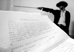 昨日上午,張謙卑拿著這紙協(xié)議來到本報,說出了自己的苦悶。他說,2007年8月28日,他和網(wǎng)友“自由魚”李×見面并相戀,因為張謙卑一直懷疑李×不是處女,還多次側(cè)面通過QQ試探到李×似乎有其他男人,所以心結(jié)遲遲未解開!八拗兄Z沒有,但我還是不死心,我們因為這還曾經(jīng)分手過一段時間!睆堉t卑說,今年5月份他們復(fù)合了,但是他心里仍有陰影,于是昨日自己草擬了一份“咒死協(xié)定”!拔乙呀(jīng)和她把意思表達(dá)了,她同意簽字!睆堉t卑說。