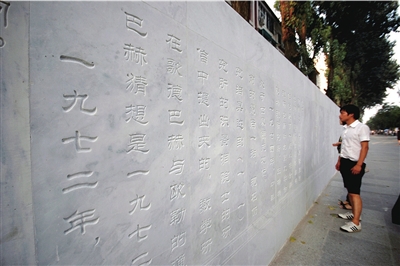 昨天下午,記者看到碑文還有多處缺少標(biāo)點、錯字及語序不通的錯誤?茖W(xué)碑尾部刻有“中國科學(xué)院行政管理局”、“中關(guān)村街道辦事處”、“二零零八年五月一日”字樣。