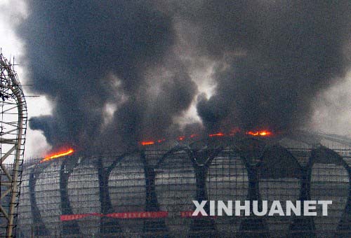 7月27日,濟南奧體中心在建體育館發(fā)生火災(zāi)。這個體育館是為2009年在山東濟南舉行的十一屆全國運動會建設(shè)的。 新華社記者 朱崢 攝
