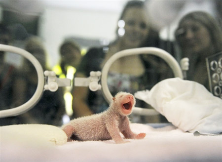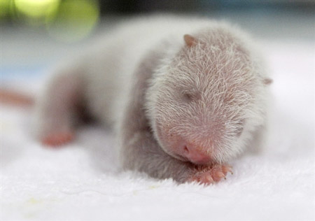 從7月26日17∶24至7月27日06∶55,成都大熊貓繁育研究基地的大熊貓在14小時內(nèi)順利產(chǎn)下了三胎四仔寶寶,同一個種群的大熊貓在短短的時間內(nèi)如此密集地順利產(chǎn)仔,在全球大熊貓繁育史上尚屬首次。這批震后成都首批新生大熊貓寶寶,顯得彌足珍貴,意義深遠(yuǎn)。