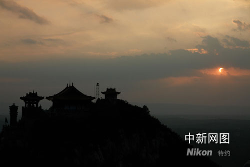 當(dāng)天,一路記者當(dāng)時(shí)在晉城市玨山風(fēng)景區(qū),當(dāng)時(shí)山上游客不多,在山頂記者拍下了這次全日食的變化,遺憾的是在山西省看到的是全日食的偏食過程。另一路記者卻在翼城縣公安局家屬院12層樓頂拍攝到這次百年不遇的奇觀。