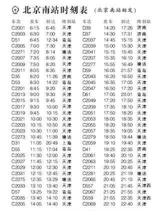 ●除了京津城際列車,北京南站同時也發(fā)售所有北京站、西站始發(fā)的列車車票。