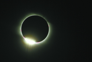 在金塔縣觀測點的國家天文臺研究員顏毅華描述說,日食初虧時,太陽像是邊上缺了一點的圓;繼而太陽被遮擋部分的陰影增大,天色逐漸變暗;隨后太陽變成一彎新月;在太陽被月亮完全擋住之后,全食開始;不到兩分鐘后,全食結(jié)束,光線一點點地從一個黑色圓球的周邊發(fā)散,太陽又變成新月形狀,直到逐漸復(fù)原。