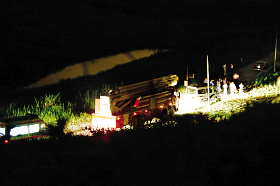 記者接報(bào)趕赴時(shí),發(fā)現(xiàn)警方在距現(xiàn)場(chǎng)一公里處便已開始設(shè)卡封鎖,禁止無(wú)關(guān)人員進(jìn)入(見上圖,陳文筆、張雄高攝)。209倉(cāng)庫(kù)內(nèi)警燈閃爍,大批消防車出動(dòng)。由于是化學(xué)品失火,不能用水撲救,因此不斷有泥頭車從外面運(yùn)來(lái)干沙滅火。昨晚11時(shí)許還增加了一輛挖掘機(jī)進(jìn)場(chǎng)。待情況穩(wěn)定后,不斷有此前從倉(cāng)庫(kù)疏散出來(lái)的工人經(jīng)同意后重新進(jìn)入庫(kù)區(qū)。