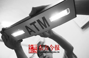 取款機是個內(nèi)陷型的窗口,周某等人在窗口內(nèi)側頂部,粘上了一個貼著“ATM”字樣的“發(fā)光燈”。這個“發(fā)光燈”是經(jīng)過特殊改造的,里面用一塊手機電池做電源,連接著兩個燈泡,核心部分則是一個MP4。取款人取款時的全過程于是被犯罪分子裝的“針孔攝像機”進行了“實況錄像”。