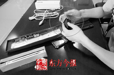 取款人一走,周某等人立即收“家伙”進車,先把MP4連上筆記本電腦,回放錄像記下取錢人按下的密碼,接著再連上讀卡器,同時再在電腦上連上一個叫“寫卡器”的長條形東西。這時,他們隨便拿出一張卡,不管是澡堂充值卡,還是超市禮品卡,只要是帶磁條的,只要在寫卡器里過一下,此卡就被成功“克隆”成一張“有實無名”的銀行卡了。