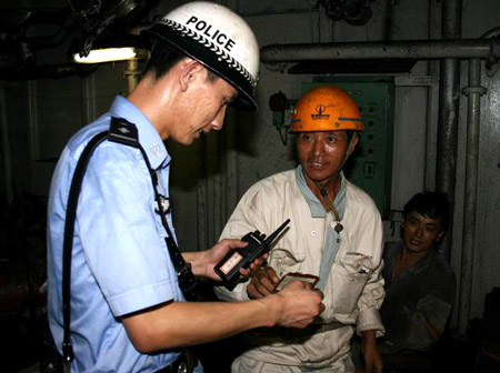 為進一步鍛煉、檢驗應急反應和協(xié)同作戰(zhàn)能力,消除對外開放口岸安全隱患,8月9日、10日兩天,(上海)金山邊檢站與市局水上公安局在龍吳路沿江部分對外開放碼頭舉行了代號為“江盾”的聯(lián)合演練,通過實戰(zhàn)提高雙方應對口岸突發(fā)事件的能力,為奧運盛會的平安舉行保駕護航。演練階段,由雙方分別對碼頭安保工作、登輪管理工作及外輪自管工作展開專項檢查,并向外輪船員、碼頭工作人員宣傳雙方在奧運會舉行期間將采取的服務、管理舉措。值得一提的是,演練過程中,多艘駁船企圖趁夜色非法搭靠外輪從事不法交易,在雙方的密切配合下,成功制止了其不法行為。(新華網(wǎng)上海頻道 記者陳飛 通訊員唐杰攝影報道)