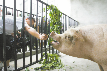 ·“豬堅(jiān)強(qiáng)”出名享受明星待遇 早晚散步有人按摩