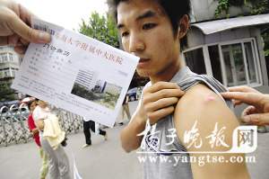 昨天中午12點(diǎn)20分許,南京湖南路馬臺(tái)街上,一輛奔馳車(chē)快速開(kāi)出停車(chē)場(chǎng)時(shí)撞到一名騎車(chē)回家的大學(xué)生高某,奔馳車(chē)撞人后開(kāi)出近30米掉頭返回,車(chē)主搖下車(chē)窗準(zhǔn)備給被撞者300元讓他自己去醫(yī)院,結(jié)果周?chē)罕娳s來(lái)圍住車(chē)子報(bào)警。所幸高同學(xué)腦部和胸部沒(méi)有損傷,只是手肘和肩部有軟組織挫傷和皮膚擦傷。