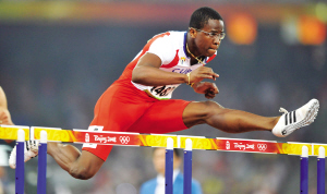 羅伯斯參加北京奧運(yùn)會(huì)110米欄比賽