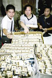 2007年7月底,李雪君、周冬梅出獄不到一個月,又重新糾合王濤等團伙成員,雇請多名幫工,從浙江非法購進一套煙機到武漢,繼續(xù)進行制售假煙活動。從投產(chǎn)到今年7月27日案發(fā),該團伙制造的假煙通過地下銷售網(wǎng)絡(luò)向武漢三鎮(zhèn)市場滲透,據(jù)公安機關(guān)目前掌握的情況,該案的實際涉案金額在1000萬元以上。