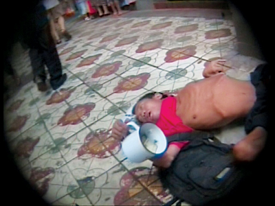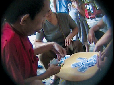 直到中午12點(diǎn)左右,乞討男子悄悄做了個(gè)手勢(shì),綠衣男子立刻跑來將乞討者背在背上離開下河路!苞棥币贿吪臄z,一邊跟著兩人向魚洞車站走去。隨后,兩人坐上開往李家沱的公交車。此后,讓人意想不到的情況發(fā)生了,“鷹”看到,兩人吃過午飯后,乞討者竟來到李家沱車站邊的東南亞農(nóng)貿(mào)市場(chǎng)門口斗地主。