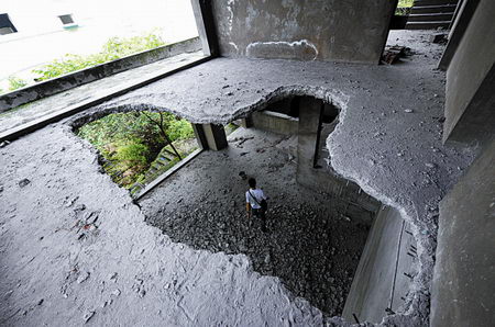 沙坪壩區(qū)平頂山的別墅群最近遭到浩劫,其中26棟被人砸出大洞,墻壁和天花板部分鋼筋被人切割盜走,現(xiàn)場慘不忍睹。