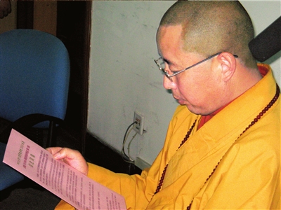 填寫好報(bào)名表,釋宏永的手機(jī)響起,僧袍里,他熟練地摸出一部智能手機(jī)——事實(shí)上,他還有聯(lián)想筆記本電腦、開著越野車、印有名片,這些都“很現(xiàn)代”。在他看來(lái),寺廟不能脫離現(xiàn)代社會(huì)而存在。這次汶川大地震期間,釋宏永參加救援隊(duì)伍,帶路營(yíng)救出45名群眾,并一直堅(jiān)持在災(zāi)區(qū)一線抗震救災(zāi),個(gè)人化緣為回龍溝災(zāi)區(qū)買回1萬(wàn)多斤大米賑災(zāi),在當(dāng)?shù)乇粋鳛榧言挕?