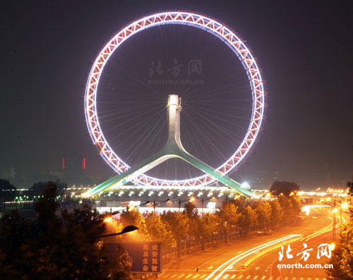 “天津之眼”是世界上唯一建在橋上的摩天輪,直徑110米,最高點(diǎn)距地面130余米。摩天輪裝有自動感應(yīng)門,接觸器在起點(diǎn)處地面上,接到指令關(guān)門后,就無法從里打開艙門,直到轉(zhuǎn)完一圈回到起點(diǎn),才能重新獲得指令打開艙門。據(jù)了解,摩天輪已經(jīng)通過質(zhì)檢。日前,“天津之眼”進(jìn)行了首次載人調(diào)試,旋轉(zhuǎn)一周大約用時28分鐘。
