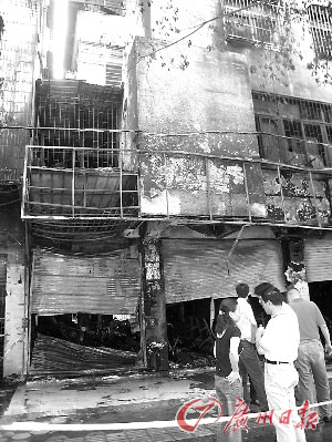 事發(fā)的這家裝飾材料商行位于惠城區(qū)麥地麥岸路12號(hào)街邊一樓。記者昨天上午在現(xiàn)場(chǎng)看到,這個(gè)商鋪寬約二三十米,卷閘門(mén)及里面的貨物及摩托車全部燒成了廢鐵,樓上外墻都被熏黑了。二樓的窗口被消防隊(duì)員撬開(kāi)以便于救人。
