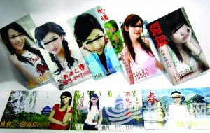 孫朱夫婦買了十多張手機(jī)卡和十多只小靈通。找了家地下作坊,花600多元,制作了1萬余張印有漂亮女孩的招嫖名片。