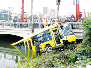 據(jù)目擊者介紹,當(dāng)時(shí)638公交車從海泰大街北面駛向津靜公路,松花江面包車從南側(cè)右轉(zhuǎn)至津靜公路。當(dāng)時(shí)兩車車速都很快,兩位司機(jī)都以為對(duì)方會(huì)避讓。結(jié)果兩車相撞后,公交車沖上路邊人行道,撞壞護(hù)欄后,墜入路邊的河中。不到一分鐘,公交車就淹沒在河水中。