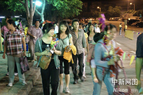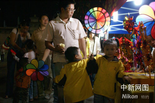 6日晚上21時(shí),逛“狗仔墟”的游客們開始登高上山,小孩子手持風(fēng)車,迎風(fēng)而跑,歡歌笑語灑滿登山路上。南海西樵山上的幾大景區(qū)已經(jīng)爆滿。