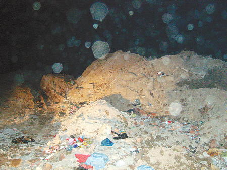 為防備拉土車亂倒垃圾,二府莊村民用混凝土樁和黃土堆將村道封閉起來,試圖阻擋拉土車通行。但即使這樣,也無法擋住拉土車。楊長水說,拉土車主們見村子里設(shè)了路障,“拉土車主竟找來裝載機,裝載機在前面開路,一轟油門就把路障推出上百米,我們實在沒轍了,只好組織村民每晚巡查,沒想到他們這么猖狂……”