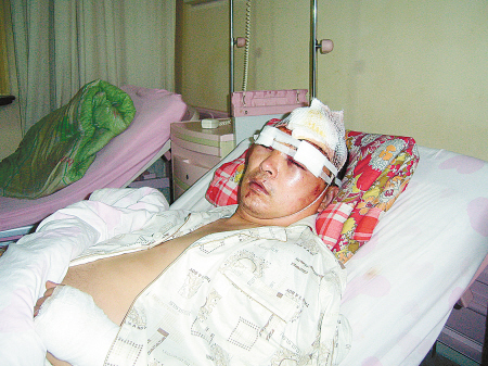 “就是那幫晚上在村里亂倒建筑垃圾的家伙!他們沖上來認(rèn)準(zhǔn)了我就打,還惡狠狠地撂話說要制服我這個不怕他們的人!”昨晚,正在醫(yī)院接受治療的魚化寨二府莊村治保主任項建宏身上纏滿了繃帶,他睜著青腫的雙眼,向記者訴說不久前發(fā)生的那一幕時仍是異常氣憤。