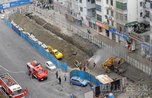記者看到,消防隊(duì)員一邊疏散圍觀群眾,一邊組織水槍手不停地向煤氣管道的斷裂處、距離出事地最近的成都巖礦測(cè)試中心臨街的宿舍進(jìn)行噴射,稀釋泄漏出來的煤氣。由于施工地點(diǎn)是在快車道上,現(xiàn)場(chǎng)執(zhí)勤的交警對(duì)人民北路一環(huán)路口至成都巖礦測(cè)試中心段暫時(shí)實(shí)行交通管制。