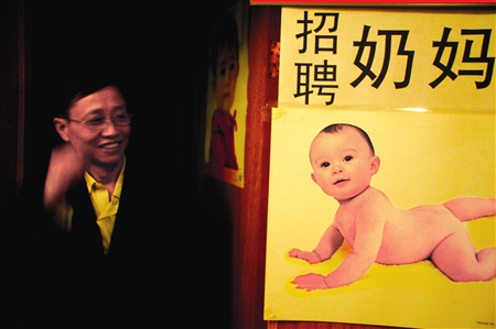 奶媽的奶媽公司。據負責人張光福介紹,近段時間到這里來報名的奶媽每天都有好幾個,咨詢雇傭奶媽的電話也不斷。