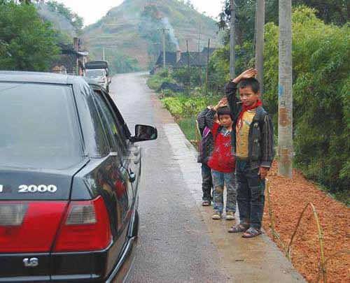 楊正洪說,“中小學(xué)生要向過路車輛敬禮”是條不成文的規(guī)定,并非全縣所有中小學(xué)都實施,而是專門針對農(nóng)村地區(qū)。楊正洪這樣描述黃平鄉(xiāng)下的公路:道路崎嶇險峻,彎度大,路面窄!罢{(diào)皮的中小學(xué)生喜歡在上下學(xué)的路上嬉戲打鬧,存在很大的安全隱患,導(dǎo)致了一些交通事故。”他說。