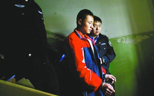 自首后的王二兵被戴上手銬。孫純霞 攝