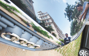 停在城中村里的這輛奧迪A6,映在車身上的正是“換錢買車”的城中村樓房。
