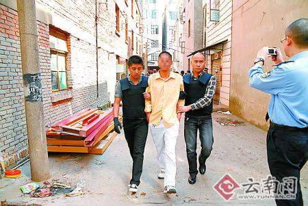 上午8點(diǎn)49分,昆明市公安局五華分局馬村派出所接到市局110指令,下馬村301號(hào)4樓,一男子劫持一女子欲將其殺害。民警迅速趕到現(xiàn)場(chǎng),見(jiàn)男子反鎖大門,拒絕開(kāi)門的同時(shí),情緒比較激動(dòng):“我就是要?dú)⒘诉@個(gè)賤人,你們不要管我!”他還嚷著如果民警進(jìn)屋,就要?dú)⑺缿阎信。民警通過(guò)出租房門頭的窗戶往里看,只見(jiàn)一名戴眼鏡的男子一手勒住一女子的脖子,另一只手拿著一把長(zhǎng)20多厘米的菜刀架在女子脖子上。女子面色慘白,全身瑟瑟發(fā)抖,一臉恐懼。