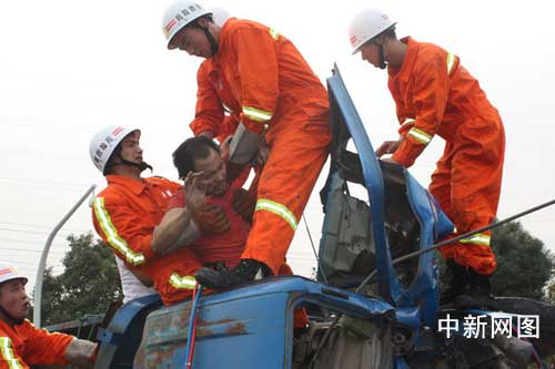 由于救援空間狹小,消防隊員用了20多分鐘才把三名被困人員全部救出。與葉先生一起的駕駛員陳先生在消防隊員5分鐘的救援下,被成功救出,并送上120救護車送往醫(yī)院急救。