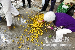 記者隨后與彭先生一起來(lái)到該水果店,并當(dāng)場(chǎng)剝開(kāi)十來(lái)個(gè)橘子,最終找到一條蛆蟲(chóng)。水果店老板見(jiàn)橘子內(nèi)果然有蛆,當(dāng)即拿出10元錢(qián)給彭先生作為補(bǔ)償,并將剩下的大半筐金橘倒在路邊,引得眾多路人圍觀。水果店老板稱,這些金橘采購(gòu)自市內(nèi)水果批發(fā)市場(chǎng)。水果業(yè)有關(guān)人士稱,眼下重慶市場(chǎng)金橘多產(chǎn)自廣西,不一定與四川廣元有關(guān)。