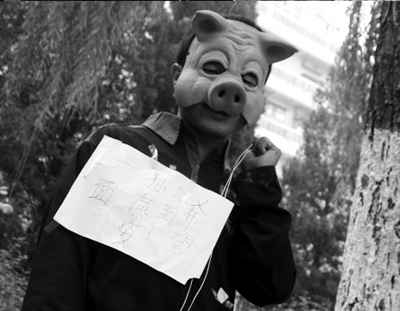 小劉說,他也是艱難考慮了一年才作出這個決定的。他說,戴面具不是因?yàn)榕滦,而是怕給家人帶來影響。至于專門挑選的豬頭造型的面具,則是“因?yàn)槲乙仓雷约旱男袨楹苌怠。小劉的行為引來了路人的關(guān)注和質(zhì)疑。“男兒膝下有黃金,你這么做都對不起父母,給我起來!”一位老人嚴(yán)厲地說。面對質(zhì)疑,小劉一再表示,要跪到堅(jiān)持不住的時候再走,“我這一輩子只做這一次”。直至下午1點(diǎn),小劉最終放棄了跪求,休息過后自行離開。