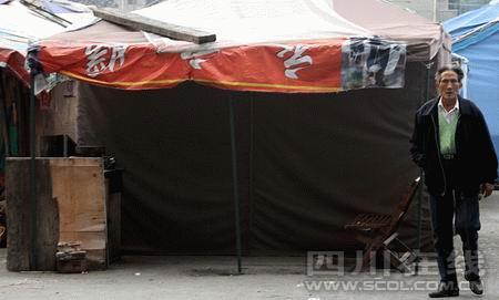昨天上午,記者來到位于都江堰建設(shè)路172號(hào)的四川省汽車運(yùn)輸?shù)?1隊(duì),大院里一堆帳篷中,羅桂瓊的兒子魏強(qiáng)一家搭建的帳篷是軍綠色,其他帳篷的住戶都是51隊(duì)的退休職工。大家指給記者看他家的帳篷!爸徊贿^已經(jīng)幾天沒有人回來了!57歲的蘭芝慧家?guī)づ窬途o挨著魏強(qiáng)家?guī)づ,她說,地震后5個(gè)月來,51隊(duì)的退休員工一直住在這個(gè)院子的帳篷里。由于羅桂瓊一家已搬出單位宿舍,到紫東街住,地震后,大家各忙各的,也沒有他們的消息。院子里的老人說,前幾天,只聽說魏強(qiáng)在一家餐館請(qǐng)親戚朋友吃喪飯,“隊(duì)里的人都知道他們家這兩天在辦喪事!