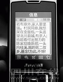 短信寫著:“若有意外,家人要堅強。村民同意,我想呆在金鼓包,一頭便能望見北川縣城的親人,也能看見付出努力的陳家壩煥新顏……”“我當(dāng)時是無意翻到的,一直沒有刪。你也太高尚了嘛,咋個就不想下我,光想到工作呢!壁w燕一說到趙海清在住院時獨自寫下的這條短信時,聲音哽咽了。