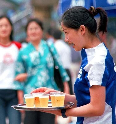 “沒辦法,我們工錢是按賣出啤酒多少算提成的,客人有時候要我們喝,不然就不買,我們也只能陪著喝!币幻麌a(chǎn)啤酒促銷小姐說。