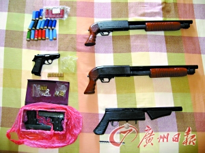 據(jù)了解,警方除了繳獲大量制毒工具和原料,還在秦某等犯罪嫌疑人的住處查獲仿六四式手槍和霰彈槍等各種槍支共7支,子彈47發(fā)。由于警方縝密部署,果斷出擊,這個持有7支槍支的武裝制販毒團伙被警方不費一槍一彈破獲了。
