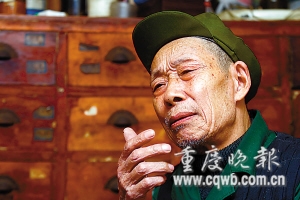 “陳珍福診所”位于石柱縣縣城新開路大安巷1號。24日,天氣微涼,人們穿上夾衣,陳珍福卻穿了兩件毛衣、一件棉背心:“涼不得,否則頭昏、胸悶,身上的舊傷還又痛又癢!