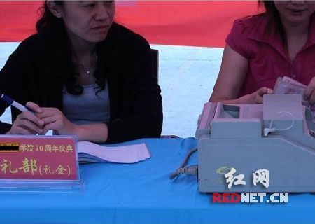 湖北民族學(xué)院七十周年校慶會(huì)場(chǎng)擺放的點(diǎn)鈔機(jī)