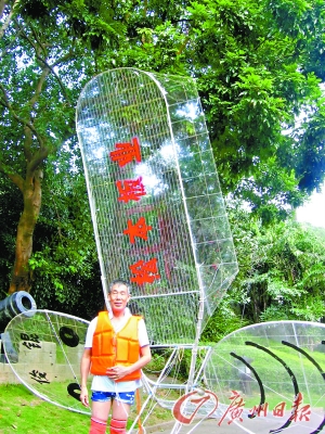“就是為了實現(xiàn)兒時的一個夢!迸砝蠋熣f,他年輕時就讀重慶一中,當時參加了學校的跳傘隊,曾想做個飛行師什么的,沒想到畢業(yè)后卻成了一名電子工程師,飛天的理想也被束之高閣,但在夢里卻經(jīng)常夢到自己駕著飛機飛上藍天。彭老師說,他最大的夢想就是用人力飛越瓊州海峽。