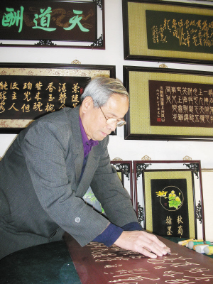 近日,記者在本市西青區(qū)楊柳青鎮(zhèn)三經(jīng)路一間偏僻的小院內(nèi)見到了劉佐忠老人和他舉辦的民間工藝美術(shù)作品展。老伴劉汝珍介紹,劉佐忠當過美術(shù)老師,大專學的是中文,經(jīng)歷也非常復雜。他做過工程師、經(jīng)濟師,他為西青區(qū)設計所做過加油站的工藝設備設計,退休后苦心鉆研民間工藝美術(shù)技藝,癡迷不舍。為了集中精力研究民間工藝美術(shù)技藝,他謝絕了高薪聘請他搞工藝設計的優(yōu)厚待遇,自掏經(jīng)費對民間工藝進行研究挖掘搶救,以藝為樂。