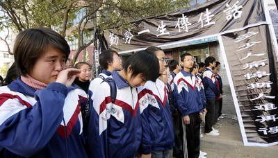 鮮花中,景正翠老師安詳?shù)刈吡恕0殡S著景正翠老師生前最愛聽的《好人一生平安》,景正翠的丈夫張新華哭著撫摩著妻子的臉,兒子張?zhí)礅x俯下身去深深地親吻母親的臉龐。所有人肅立于哀樂中,默默地和景正翠老師進(jìn)行最后的對話!袄蠋煹男θ萦|動著每一個人,那么安詳和純凈!我們怎么也不相信老師走了,感覺好像她還在我們身邊!本罢淅蠋煹膶W(xué)生——研究生畢業(yè)在北京就業(yè)的張梅含淚告訴記者,“景老師在為他人奉獻(xiàn)的時候,感覺很幸福。她身上那種甘于寂寞、專心治學(xué)和樸素踏實的精神是我人生的航標(biāo)!背橐恢沟膹埫氛f,得知老師去世的消息,她連夜從北京趕來,送恩師最后一程。