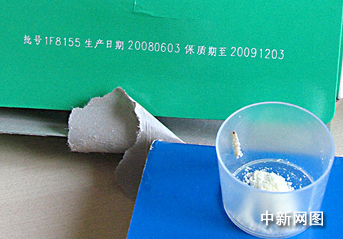 10月14日早晨,王女士給醒來的寶寶沖泡奶粉。她拆開了一包400克裝的“金裝多美滋學1加”奶粉,朦朧中看到一個東西在蠕動。挖出來一看,是條1.5厘米長的粉白色肉蟲。