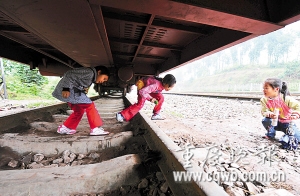 學(xué)生每天都要鉆車底上下學(xué) 記者 冉文 攝